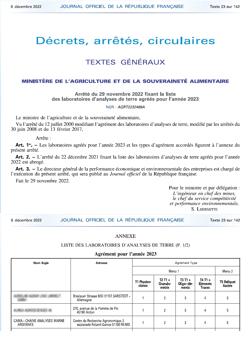 Listes des laboratoires agréés par le Ministère de l'Agriculture